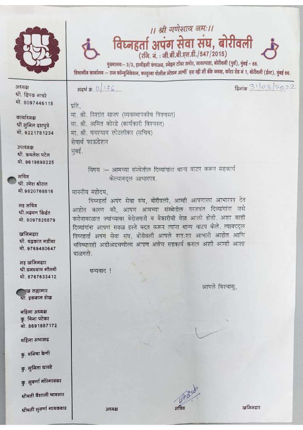 At Sevartha Foundation, we are committed to financial transparency and accountability in all our operations. Every donation we receive is used ethically and efficiently to support our mission of empowering underprivileged communities.